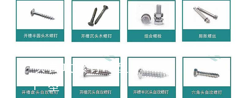 沉头内六角螺钉(平杯)、半圆头内六角螺钉(圆杯)、十字槽盘头机螺钉、十字槽沉头机螺钉、十字槽大扁头机螺钉、十字槽盘头自攻钉、十字槽沉头自攻钉、十字槽大扁头自攻钉、全牙丝杆(牙条)、六角螺母、法兰