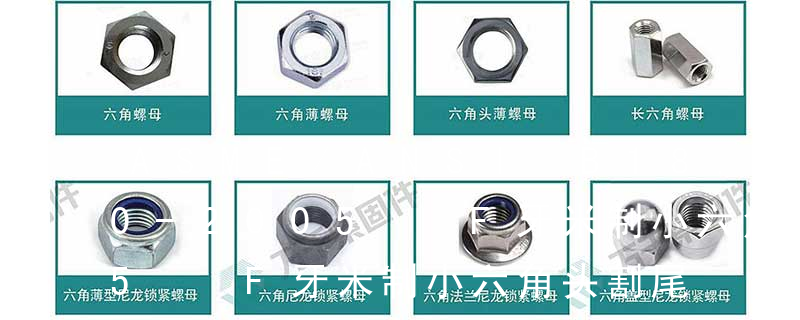 1、Flat:平头 (锁入后,顶部与工作件齐平)2、Oval:色拉头、O头、半沉头 3、Round:圆头 4、Pan:圆扁头 5、Truss:大圆扁头 6、Hex:六角头 A-5:Finish Code/外观处理。公制自攻螺丝 :于品名后方直接标示 Tap 1、不锈钢国标螺母的标准尺寸为M1.6-M64。不锈钢国标螺母包括:六角螺母(GB6170/DIN934)、薄螺母(GB6172/DIN439)、重型螺母(公制、美制)、尼龙锁紧螺母(DIN985-DIN982厚型)、全金属锁紧螺母(DIN980M),盖型螺母