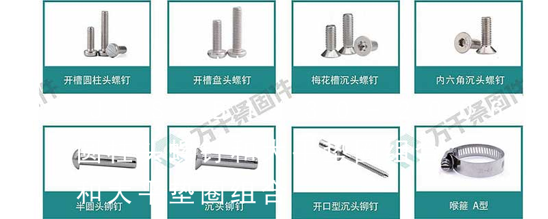 机器螺钉:因头型和槽形不同而分成许多品种。头型有圆柱头、盘头、沉头和半沉头几种,头部 槽形一般为开槽(一字槽)、十字槽和内六角槽三种。十字槽螺钉施拧时对中性好,头部强度比一字槽的大,不易 拧秃,一般多用于大批量生产中。内